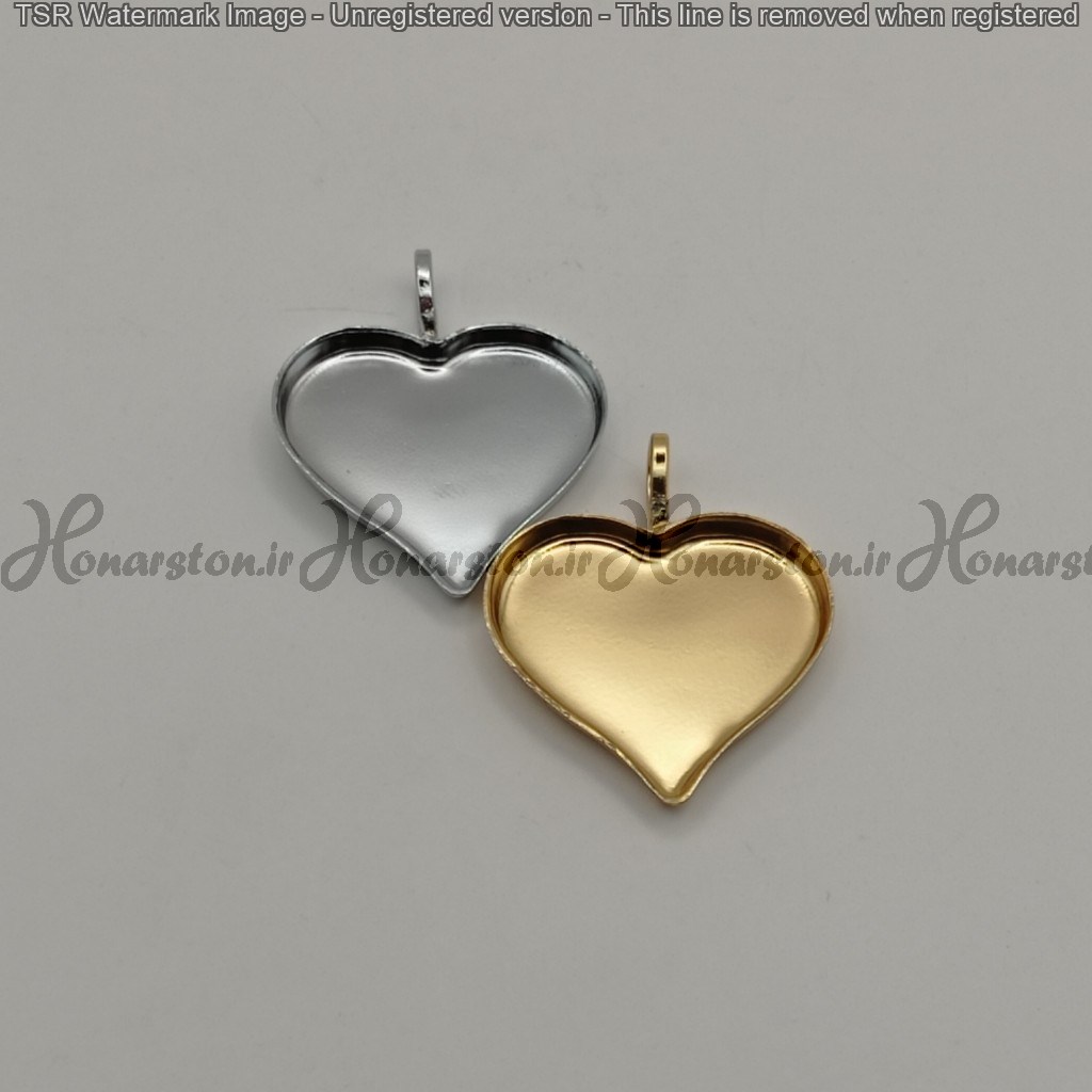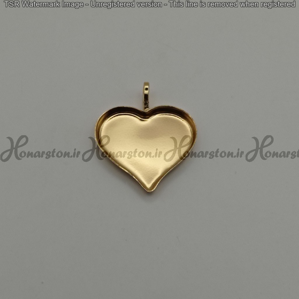 قاب فلزی رزین مدل آویز طرح قلب طلایی کفه دار سایز 2.5 سانت