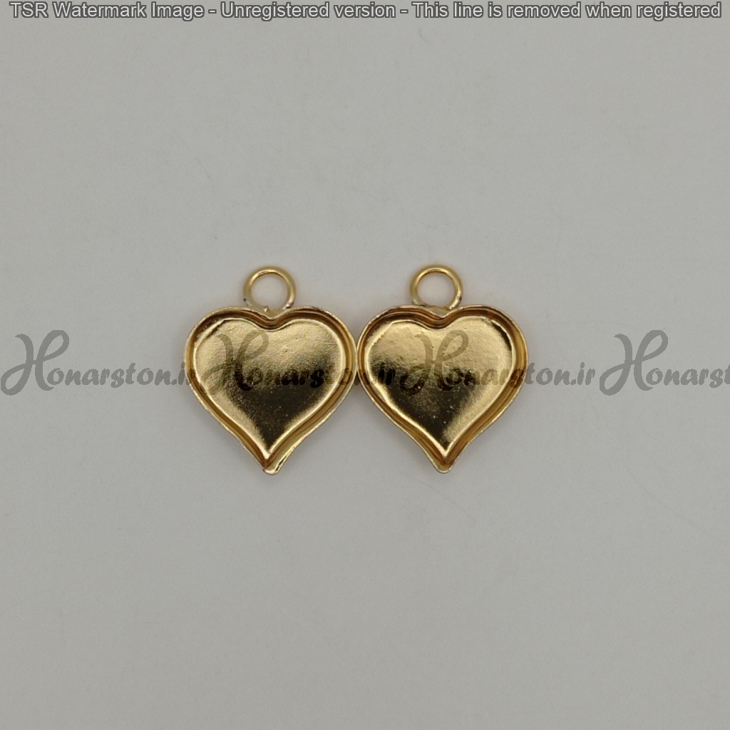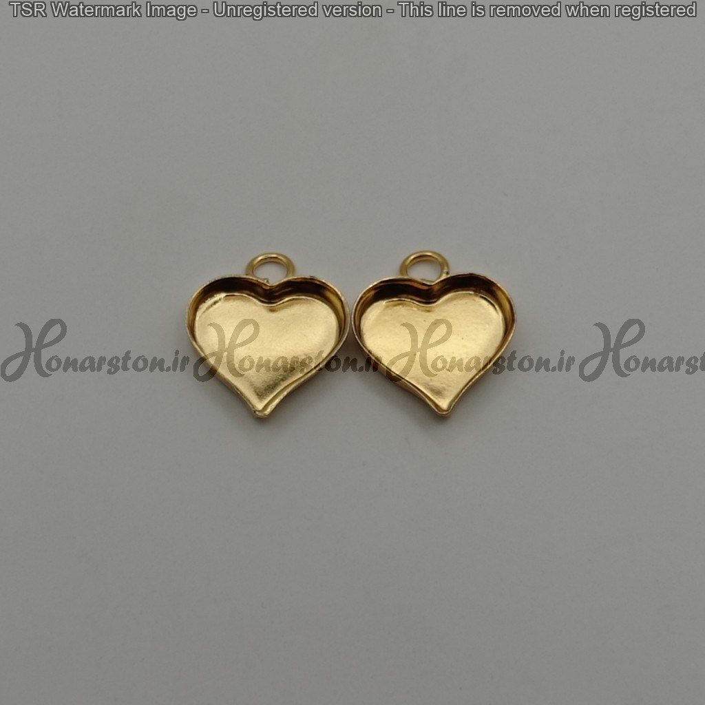 قاب فلزی رزین مدل گوشواره طرح قلب طلایی کفه دار سایز 1.5 سانت
