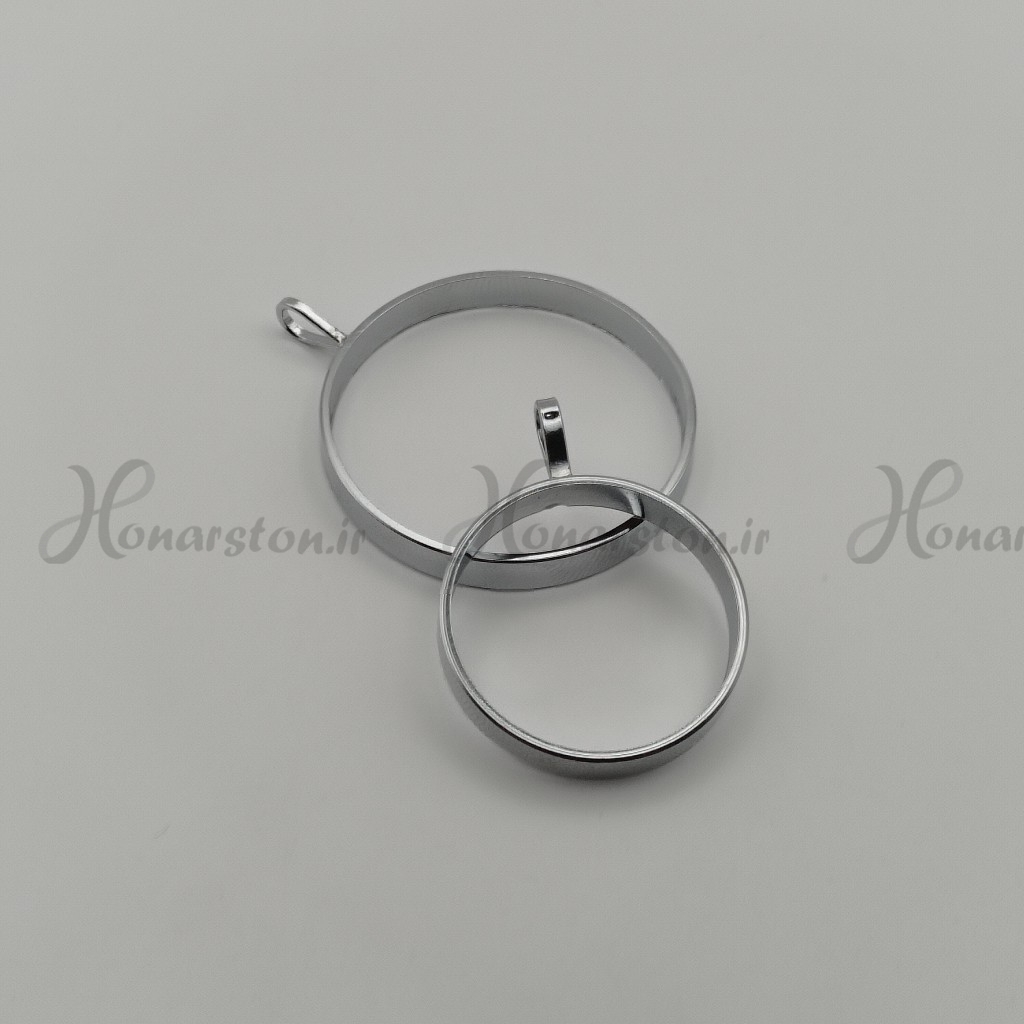 قاب فلزی رزین مدل آویز طرح دایره نقره ای سایز 4 سانت