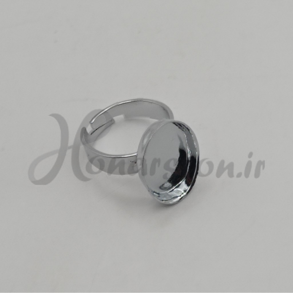 قاب فلزی رزین مدل انگشتر طرح بیضی نقره ای سایز 1.5 در2 سانت