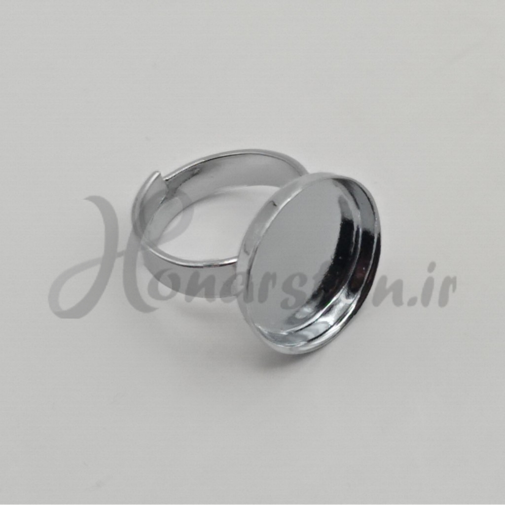 قاب فلزی رزین مدل انگشتر طرح دایره نقره ای قطر 2 سانت
